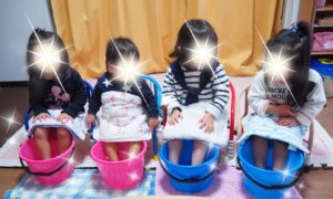 足のつま先が冷たくなったので、保育室に帰ってからは足湯でポカポカと足を温めてて、子どもたちもほっこり。