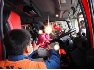 救急車の中まで入らせてもらったり、消防車のハンドルを握らせてもらったり、なかなか出来ない体験もさせてくださいました。本当に感謝です。