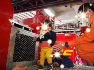 緊張していた子もいましたが、やはり興味はあり、この見学後は、保育室に戻ると消防車の絵本を見て記憶をたどりながら楽しむ姿もあります。